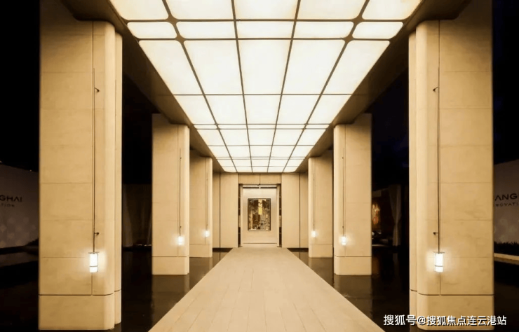 通过迎宾楼,便来到了约20米长的精神游廊 , 该精神游廊同源招商玺 “树宅相守”的设计手法,更致敬建筑诗人斯卡帕“以自然光感去创造时间驻留感”的理念 ,通过对光线、材质与空间的创新打造,营造充满宁静的归家场域。
