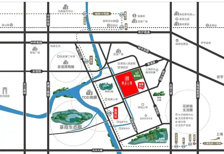 苏州轨交11号线(S1线)菉葭站700米,步行10分钟可达,7站直达上海虹桥枢纽,实现“沪昆通勤”