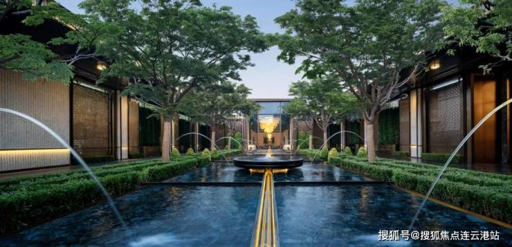 酒店式5大景观空间布局:酒店式入口(车马院)、酒店式礼序水院(音泉光厅)约25米的蓝翡翠奢石水景, 取鉴西班牙阿尔罕布拉宫仪式水轴,意大利托斯卡纳夹景设计手法、720㎡下沉式庭院—浮岛花园,奢石打造的的8支水台跳泉,配合99盏灯光涌泉,借鉴了意大利法尔奈斯庄园设计,且形成巧妙的“甲”字布局, 寓意苏州第一。酒店式风雨连廊(光影花厅)、蒙特梭利儿童乐园.十大趣味主题, 自然式的高知育教场景