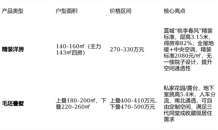 项目采用精装洋房与毛坯叠墅双产品线,满足多元家庭结构需求: