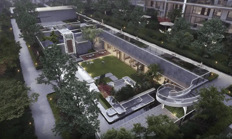 森系园林规划 :内部打造“一轴一环五园”森系园林,规划约600㎡下沉庭院,无缝链接约1000㎡地下会所,配置专属健身房、瑜伽室等活力空间,营造沉浸式自然体验。