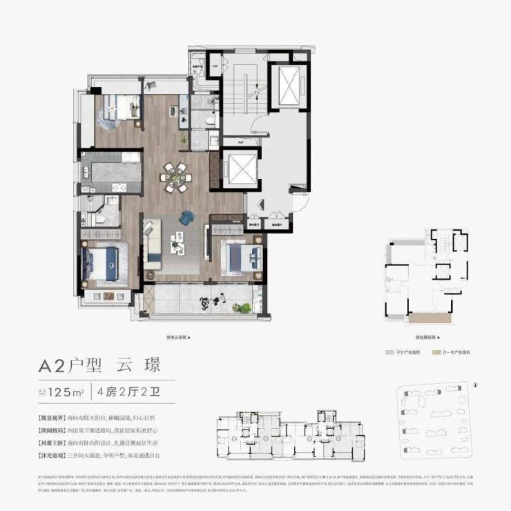 125㎡(4室2厅2卫):南北通透,双联阳台设计
