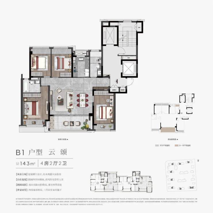 143㎡(4室2厅2卫):主卧套房+独立衣帽间