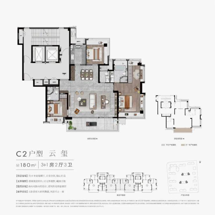 180㎡(4+1室3卫):横厅布局,全景落地窗