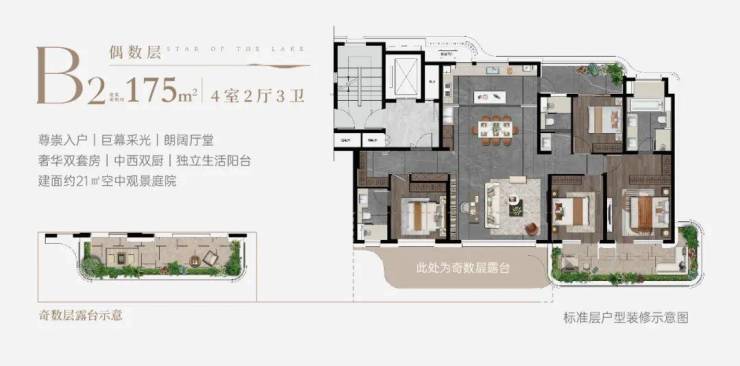 注:空中庭院面积、露台视野等具体设计以实际交付为准