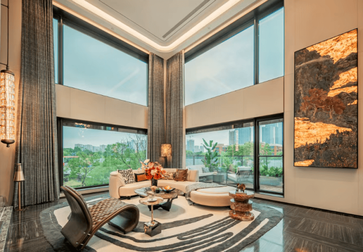 装修标准:精装交付,装标不低于 3000 元/㎡,配备西门子厨电、唯宝卫浴等国际一线品牌,并预留全屋智能家居接口。