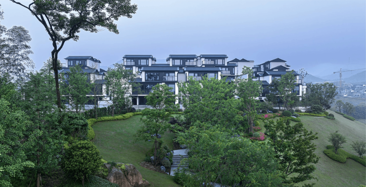 空间亮点:每户配备100–500㎡私家庭院,采用退台式布局实现“两面观山、一面观湖”视野