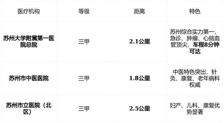 ✅ 在苏州主城区, 2公里内拥有两家三甲医院 ,且为全市排名前二, 极为罕见 ,真正实现“ 小病不出社区,大病有靠山 ”。