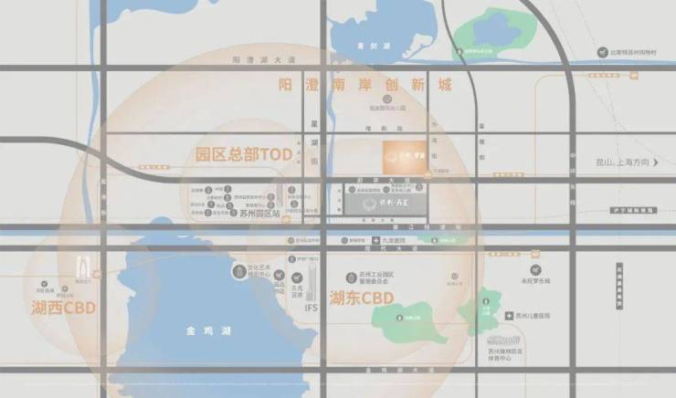 项目周边覆盖娄江快速路、中环东线等主干道,车程可达湖东CBD,距园区高铁站约1.5公里,实现地铁、高铁TOD一体化出行