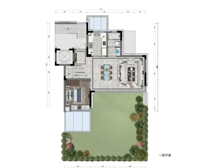 160㎡下叠:四室三厅,庭院直连茶山景观,一层层高3.6米,空间通透无压抑感,私密性极强。