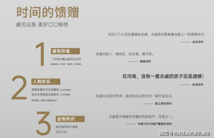 17载风雨兼程,永威以精细化为立足之本,专注于高端项目开发,以高标准的建材品质、建筑质量;观赏性与参与性兼得的园林景观;精致贴心的物业服务,成为永威享誉业界的精细化基因。