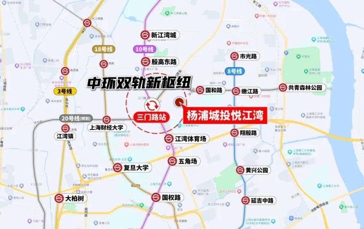 从项目出发, 步行10分钟到地铁,5分钟上中环 ,早高峰通勤效率优于杨浦区92%新盘。