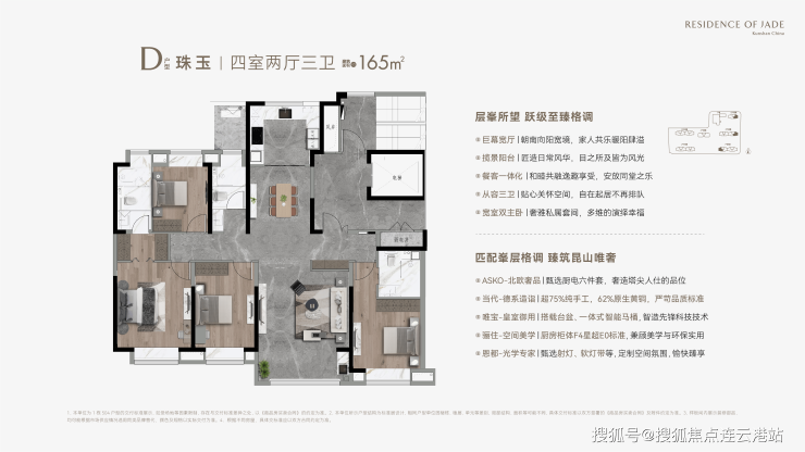 聚集北欧品牌—ASKO、德国精工传奇—当代 、德国铂浪高、骊住、日门、LD、西勒奇、西门子、赛银、圣象等一众国际一线品牌,更是全昆山首次采用三层实木地板、铸铝进户门的项目。如此逆天的配置领衔昆山精装天花板,加上品质化的细节处理,足以俘获大批买房人的心,让一众竞争对手望尘莫及!