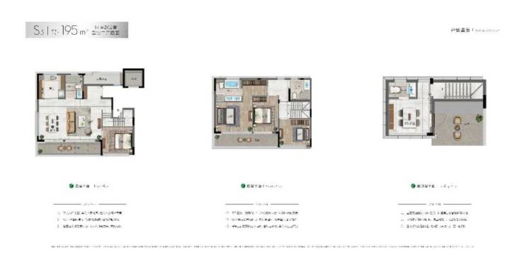 上叠(188–195㎡):顶层设环绕式星空露台,可俯瞰白沙茶山与西湖高尔夫球场,推窗即入画境,私密性与仪式感并存。