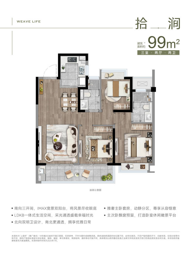 99㎡:三室两厅两卫(总价约220万)