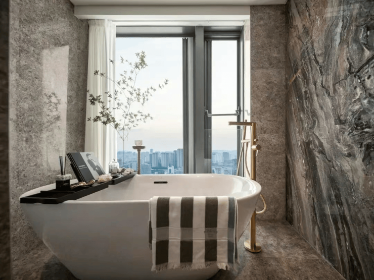 联合LWK梁黄顾、李玮珉、White Jacket、奥雅景观四大国际设计团队,打造“曲面屏”玻璃幕墙立面,大堂以奢石+灯光营造“第二会客厅”体验,归家即入星级酒店级礼遇。