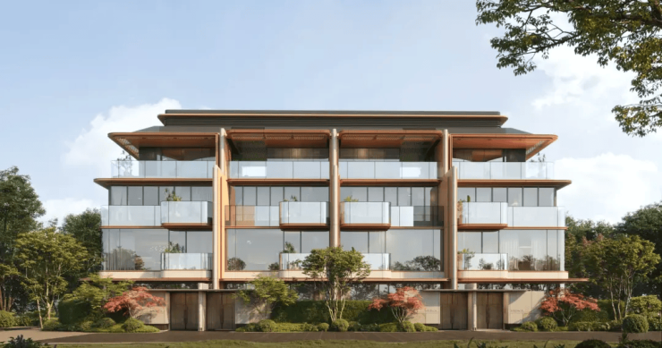 项目以“山水有相逢”为设计理念,融合北宋《溪山行旅图》意境,打造奥体板块罕见的“低密墅境”住区,产品体系分为高层大平层与独立排屋两大类。
