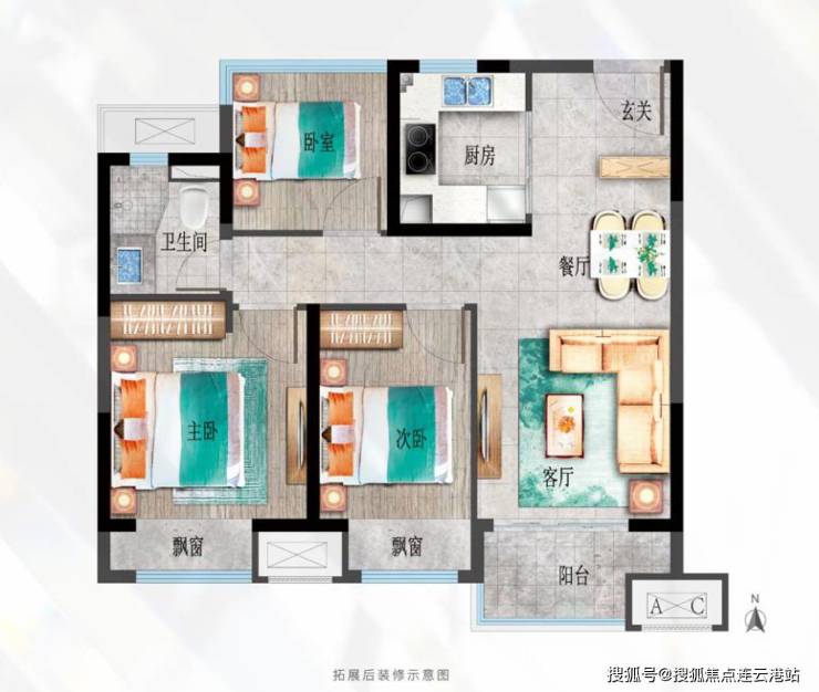 85㎡户型3室2厅1卫