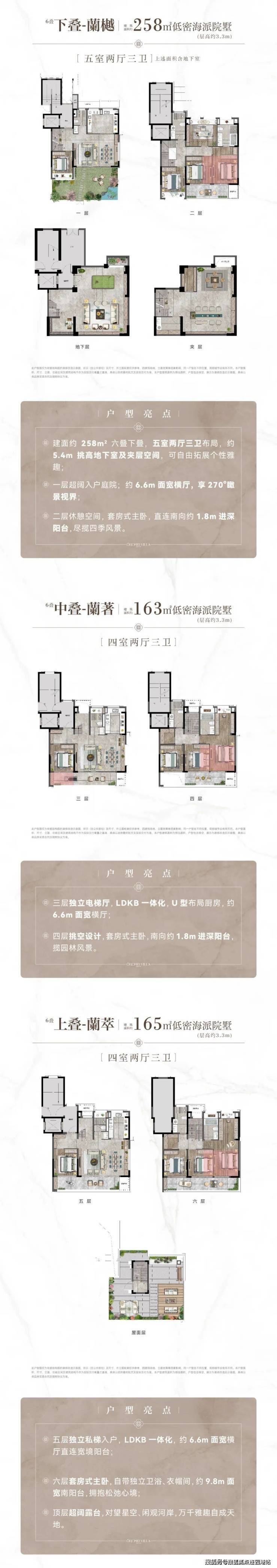 叠墅:163-258㎡(6层)、242-328㎡(4层)