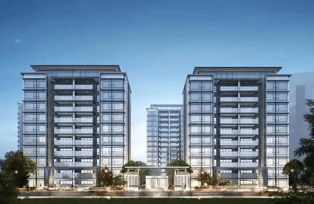 建筑形态:18幢16–17层小高层,采用台地式设计,整体抬高约3.2米,增强私密性与景观视野