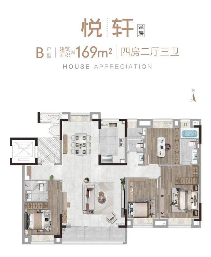 133㎡四居室:四室两厅两卫,主卧套房设计,总价约240万-280万