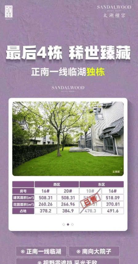 稀缺性:苏州主城别墅区最低容积率,太湖沿岸土地开发受限,地块已成绝版资产