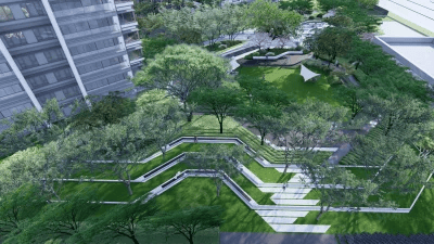 绿化率:约30%,采用公园式留白理念,社区空间疏朗通透