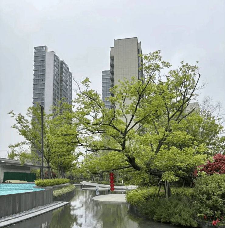 仁恒叙澜庭分为AB两区,A区2025年交付,B区期房(在建26年6-12月交付)。共37栋,2453户,容积率1.8,绿化率37%,总高15-17F,建面约110㎡、130㎡、143㎡三大主力户型。交付标准:全屋精装,中央空调系统、室内新风系统、全屋地暖系统。仁恒物业管理,物业费3.8元。