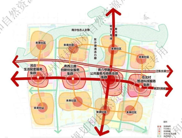 青西三路(8号线)、江东大道民主村口[公交站]、启成路(7号线)、江东大道向公村口[公交站]、青六中路(7号线,8号线)、江东大道小泗埠村口[公交站]、小泗埠村[公交站]、江东二路(7号线)、招呼站[公交站]、河庄(8号线)