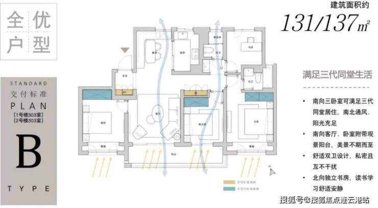 大和和风雅信共打造4种户型建筑面积约111㎡、131/137㎡、142㎡、185㎡四种户型。