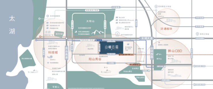 山樾云庭项目处于狮山区域、科技城区域和浒通区域三大板块中间位置,依托太湖大道东西向黄金走廊,东至狮山CBD约8公里,西到科技城3公里,北至浒通板块8公里。项目周边交通发达,出行十分便捷。