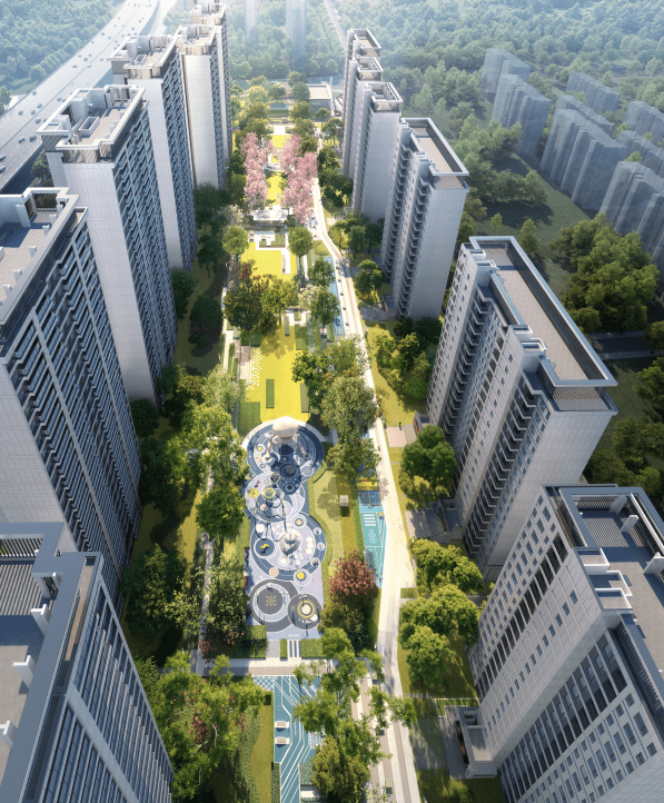 约400米中央景观绿轴,打造全龄活动空间(含恒温泳池会所、全龄乐园)