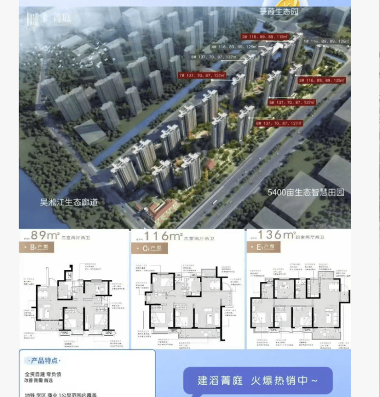 项目紧邻菉葭生态园(约30万平),绿化率35%,居住环境舒适^。附近还有景枫公园、天福国家湿地公园等多个公园^。