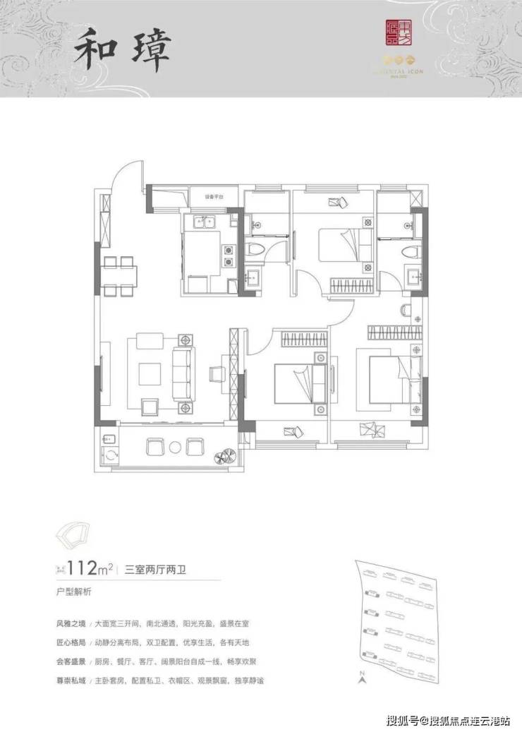 112㎡ 三室两厅两卫,这个户型很棒,面积放大之后,各空间的尺度也上去了,开间5米的竖厅不用再摆餐桌,市面上同等面积做5.6-6米的横厅,这个竖厅会更舒服,而且还是边户。