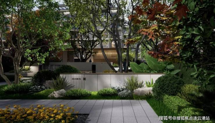 归家仪式感:52米沉香米黄石大门+星空穹顶,62米中轴景观步道