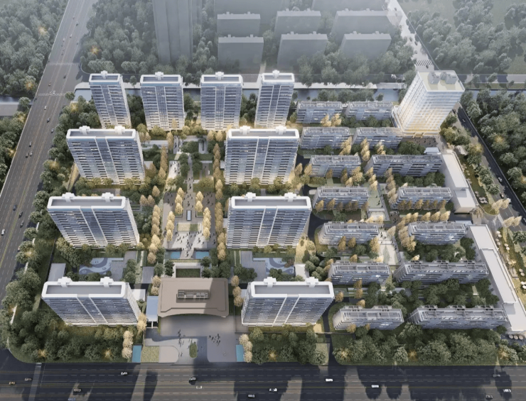 建筑美学:由平仄、梁志天设计集团、笛东、天华四大国际级设计机构联袂操刀,小高层顶部融入宋式官帽元素,寓意“仕运亨通”;外立面采用铝板+石材组合,香槟金铝条勾勒玻璃幕墙,呈现低调奢华的现代新中式风格。