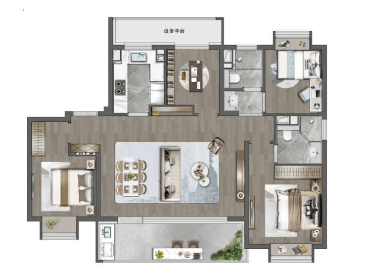 🌿 外立面:银灰色一体板 + 深玫瑰金铝板线条,低调高级,耐久抗污,主城少见的品质感