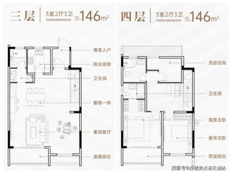 项目主力户型为 146–220㎡ 的叠墅产品,兼顾改善与度假需求: