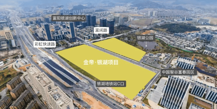 项目位置:杭州市富阳区银湖街道富闲路与创意路交叉口,紧邻地铁6号线银湖站C口,步行仅约300米即可抵达站点,地下通道直接连接地铁站,真正实现地铁上盖无缝衔接。