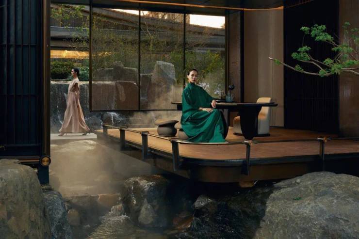 假山叠石与瀑布完美融合,惠风轩内坐石临流,水从底部石上流出,置石自然参差,东西两侧皆是赏不尽的美景,沟涧、宽溪、石隙,水在其间流淌、跌落,形成的不同的音律东方灵动水韵与感性的艺术景致,交织出一方仿若穿越时空的珍贵艺境。在这里饮茶赏景,近听水戏顽石,远观高山流水、玉带飞虹,心境不由的平和起来,身心得以栖居。