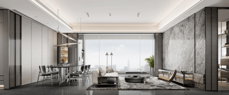 采用了当下豪宅极为流行的设计美学,建发·朗云白灰为主色调,高级,耐看,后期搭配软装时的通配性极强。