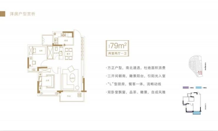 目前在售79平户型2室2厅1卫