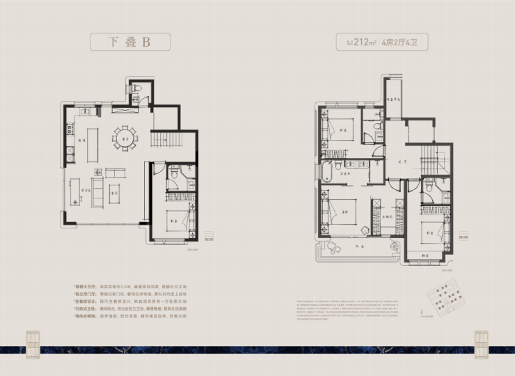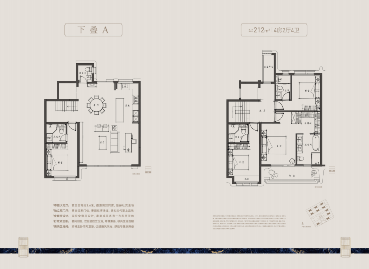 212㎡ 下叠 1101 – 1167万约;带南向私家庭院,功能可拓展