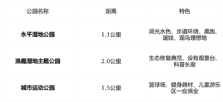 🌳 生态景观:湿地公园环绕,宜居指数高