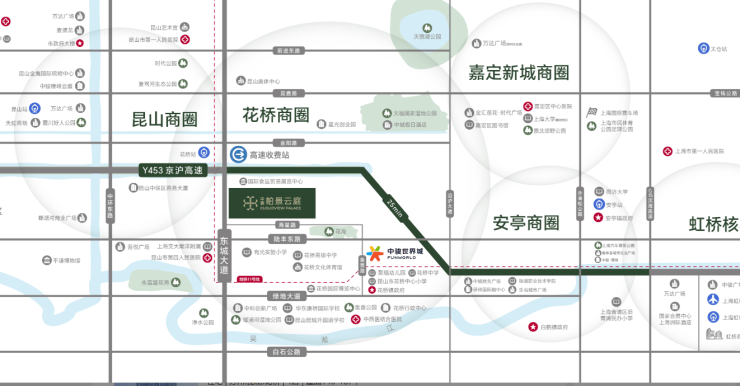 京沪高速花桥出口仅1.5公里25分钟直达上海虹桥商务区,自驾通勤无忧;