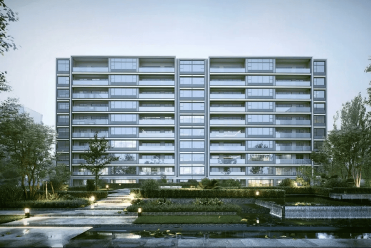 北地块(住宅/私寓):规划为 7-12 层的精工私寓及部分住宅底复,户型建面约 95-135㎡,采用玻璃幕墙 + 陶板外立面,现代简约中透出东方韵味。
