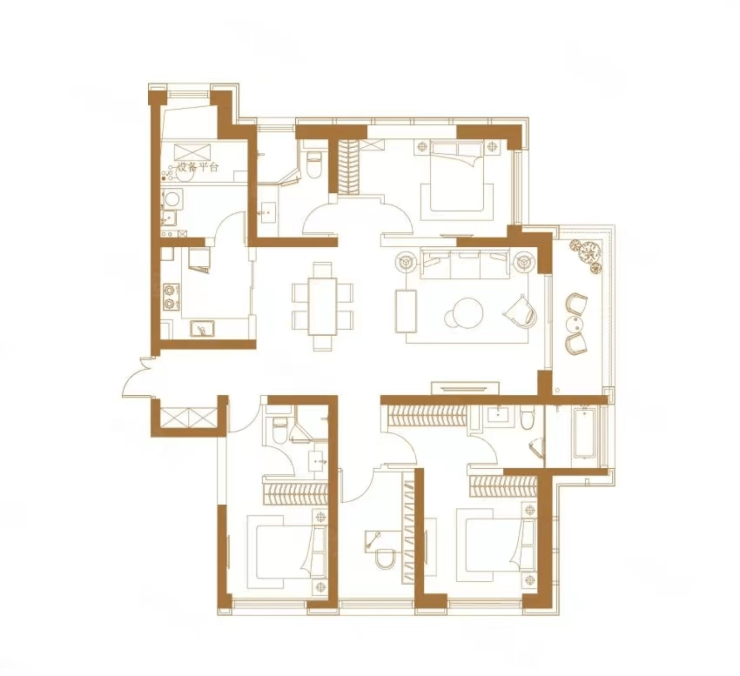 主力户型 :建面约 105–235㎡ ,涵盖两居至四居
