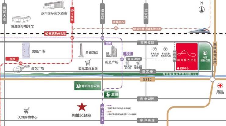 路网系统:南邻G312国道,北靠南天成路,直连中环北线及高铁新城立交,快速通达苏州各区