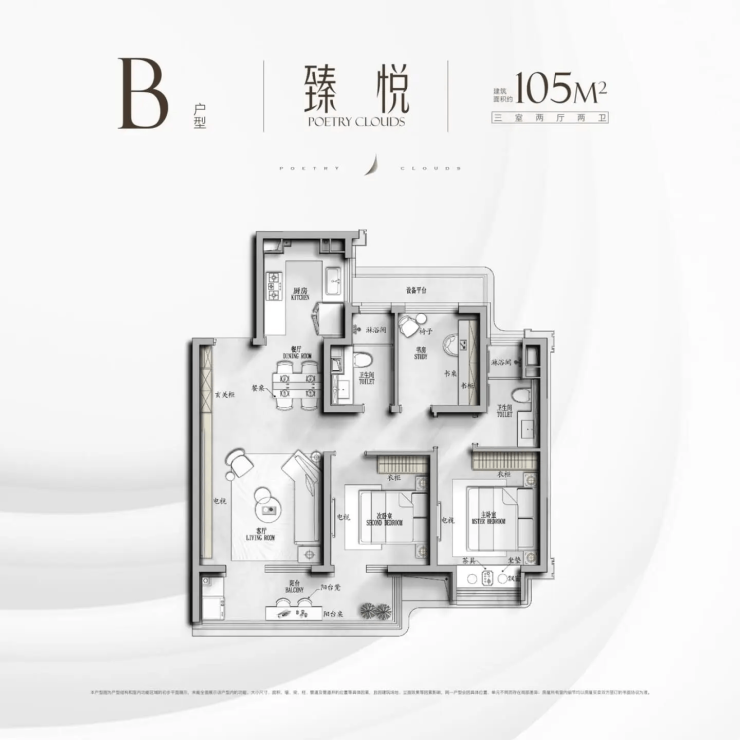 户型面积:98㎡、105㎡、128㎡、145㎡,主打三房改善,无大平层