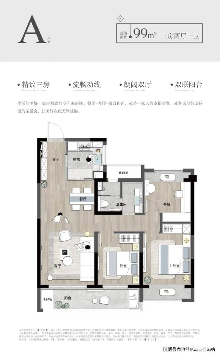 99㎡三居:单价约18800-20000元/㎡,总价185-200万/套(动静分离+全明户型)